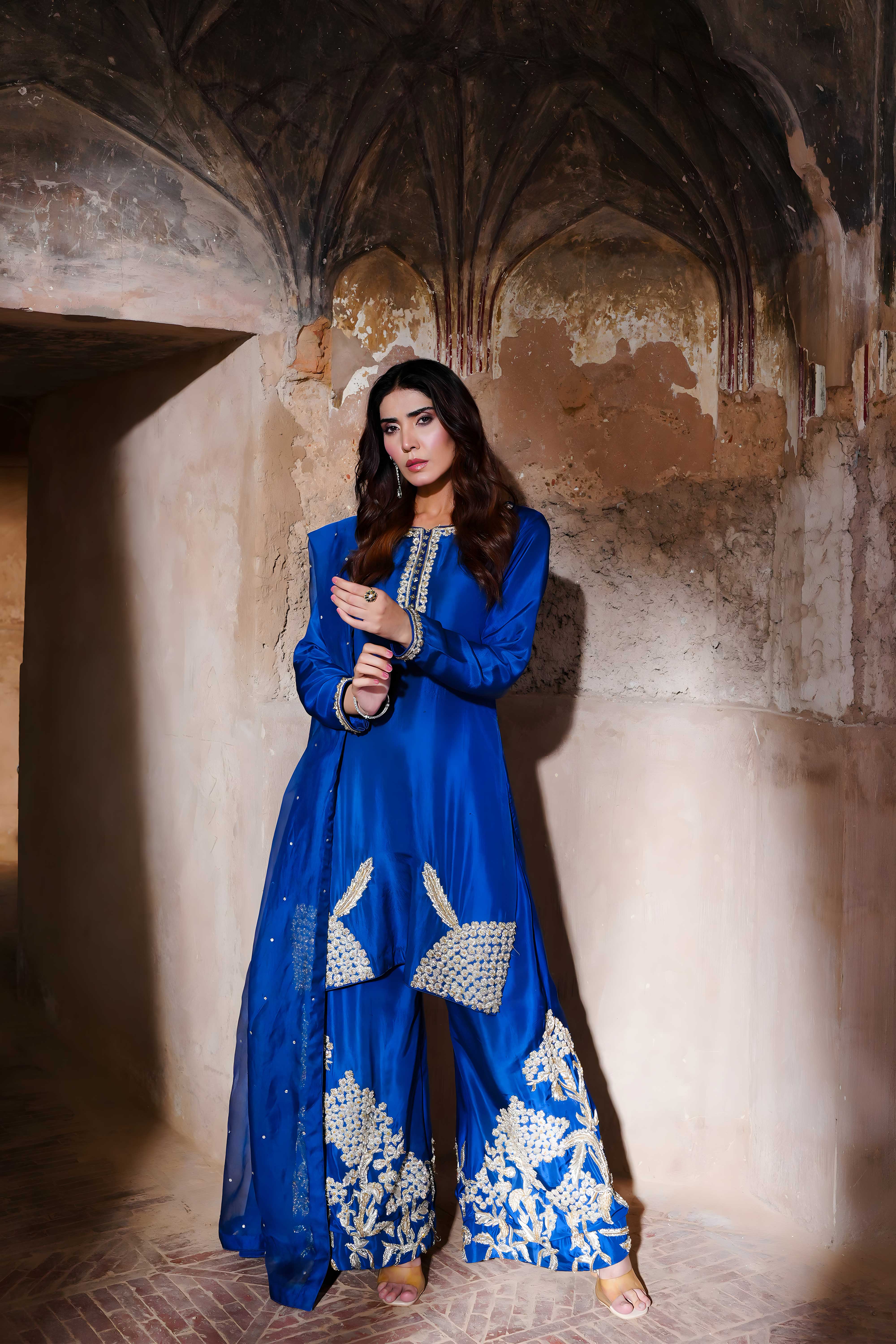 Expertly crafted from raw silk, Amela is a luxurious addition to any wardrobe. Its tissue silk dupata is both delicate and durable, making it the perfect choice for any occasion. Adorned with hand embellished dabka and stone work, this piece exudes elegance and sophistication. Elevate your style with Amela.